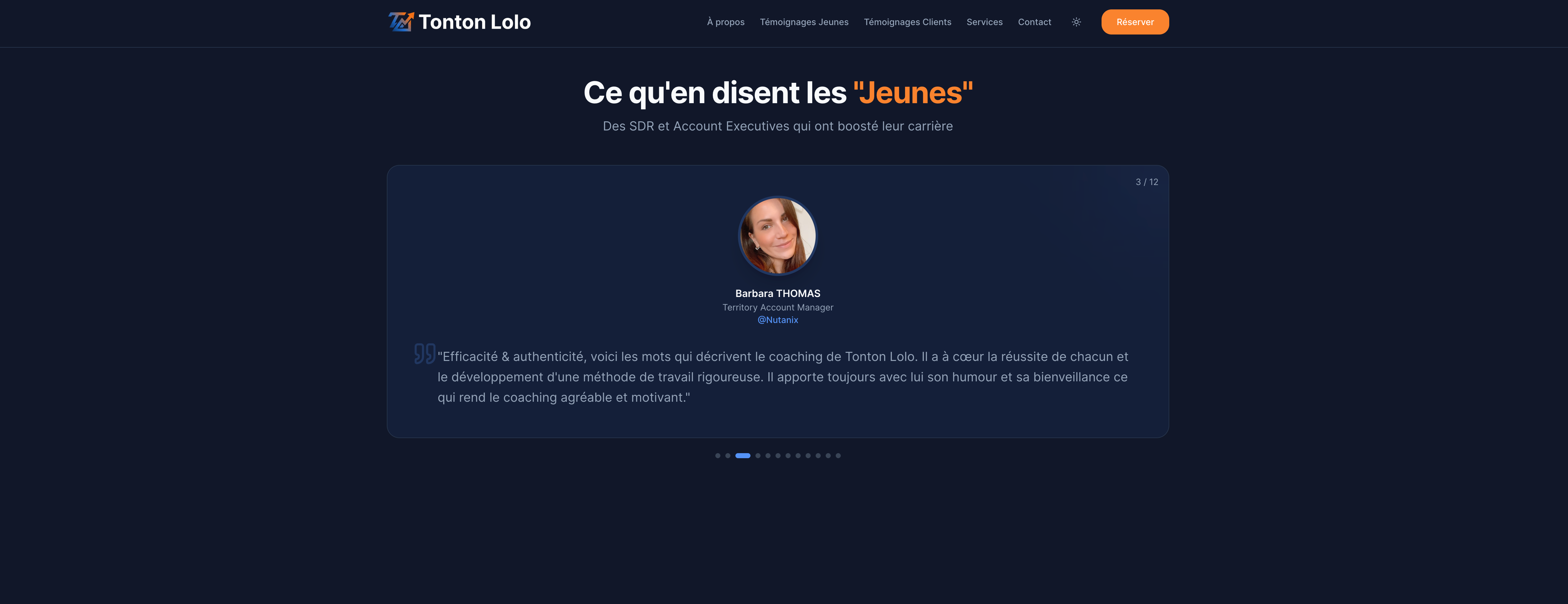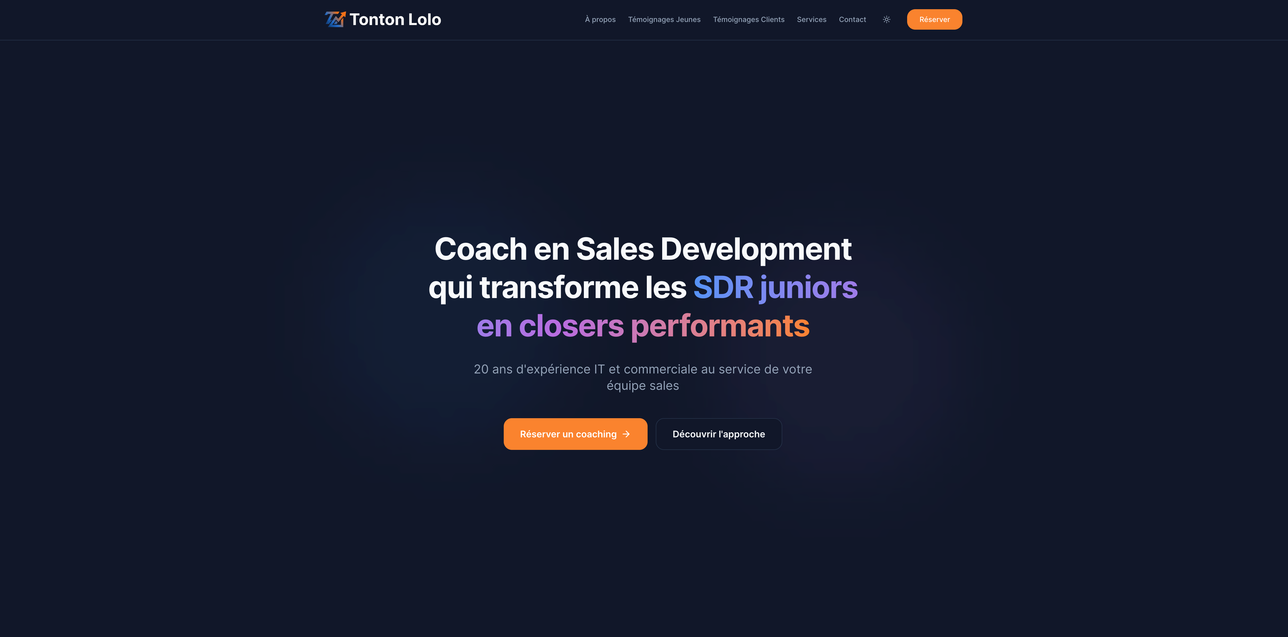 Le site existant de Tonton Lolo utilisait un template basique WIX qui ne reflétait pas le professionnalisme et l'expertise de Laurent en coaching commercial. L'interface datée, les performances limitées et l'absence d'optimisation mobile freinaient l'acquisition de nouveaux clients et ne permettaient pas de se démarquer dans un marché concurrentiel.